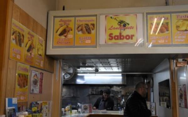 2024年1月26日,在神奈川县相川镇,一家南美食品商店Sabor Latino出售牛肉三明治和其他菜肴。(每日/ Ayano Tanaka)