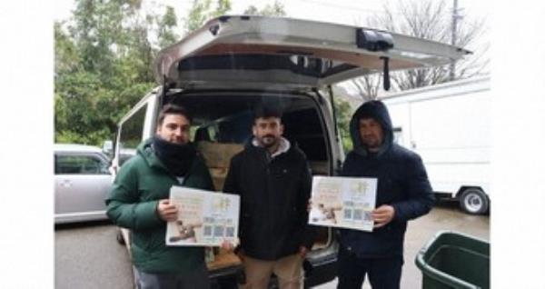 2024年2月23日,在埼玉县川口,库尔德志愿者在装满地震灾区诺藤半岛救援物资的货车上。(每日/ Takuro Tahara)