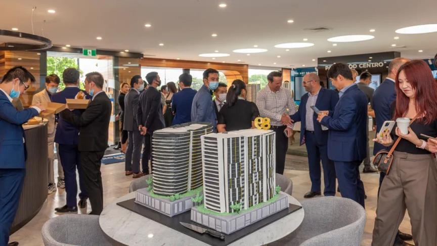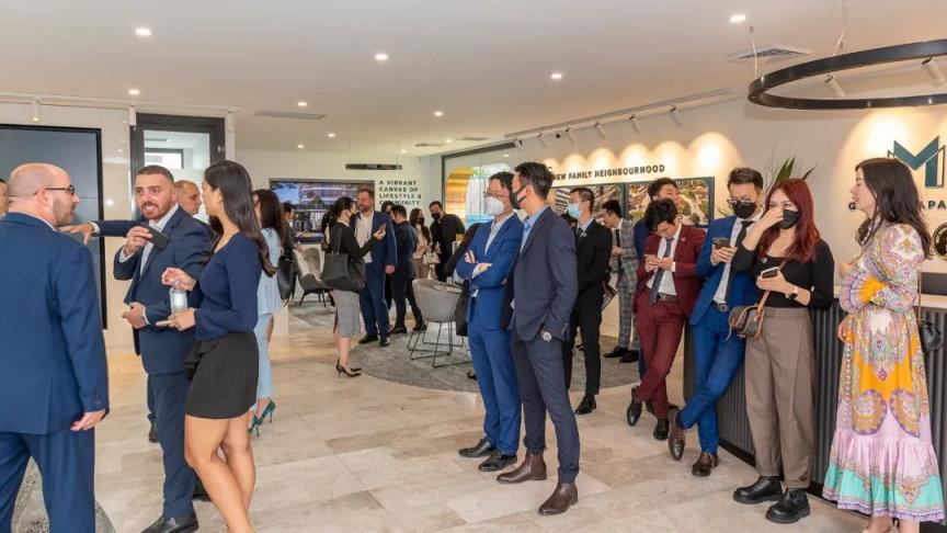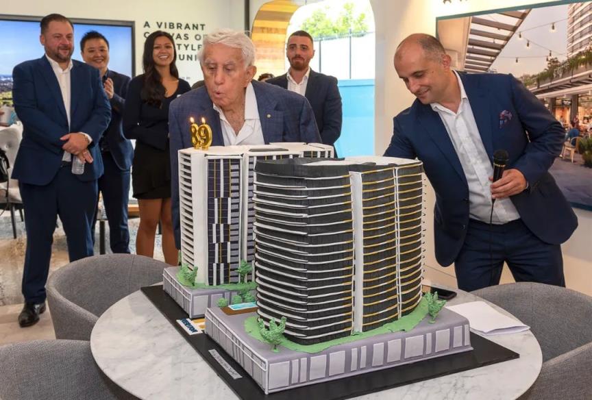 Meriton创始人兼总裁Harry Triguboff先生也亲自来到展厅面向地产销售的开放日,并与各位冒雨前来的地产销售们一同欢庆自己的89岁生日,也为展厅盛大开放助势!