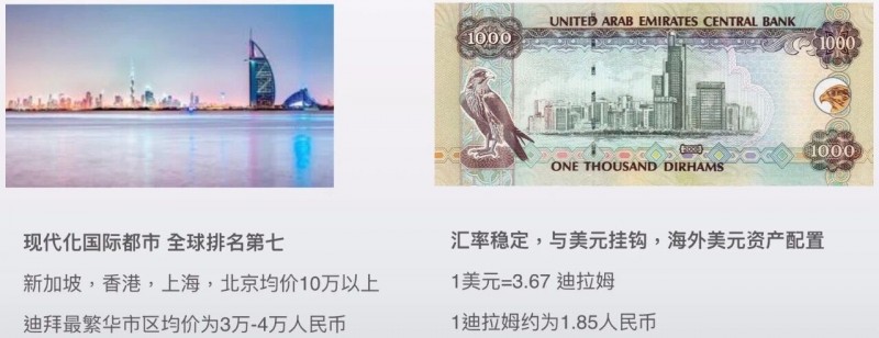此外,迪拜的货币迪拉姆与美元实行固定汇率,这为投资者提供了稳定的货币保障。在当前全球经济不确定性增加的背景下,迪拜的美元资产成为了投资者规避风险的理想选择。