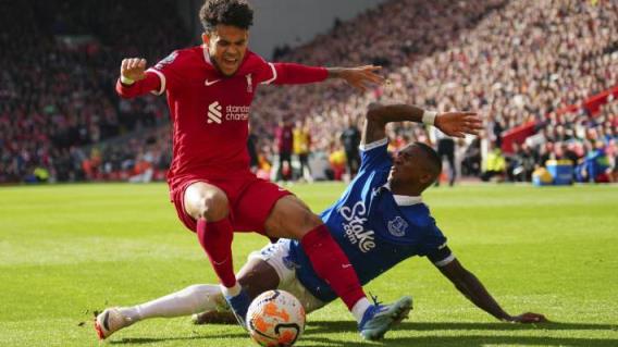 在上个月的默西塞德郡德比中,利物浦的路易斯·迪亚兹被埃弗顿的阿什利·扬犯规。