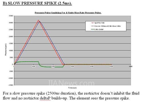 Gems的3200系列传感器外形紧凑,0到2200bar的宽压力检测范围,0.25%的精度(0.5%<60bar),-40℃至125℃的工作温度,高耐压和破裂压力,都可以很好的服务于工程机械行业,最为关键的是3200系列压力传感器拥有压力阻尼器来抵御瞬间冲击可能对传感器造成的损害。Gems压力变送器阻尼器的结构如图所示, 在压力接头通道内部焊接一个带有斜孔的阻尼装置,这个装置可以让液体沿图中所示的路线传导压力,有效的避免的直接冲击可能对膜片造成的损伤。该结构的压力阻尼器对于一般的压力变化(>2.5ms)影响的响应时间可以忽略不计;对于急速的压力(<2.5ms)上升,则能起到很好的保护作用。这也就是Gems的压力传感器区别于其他外形类似的产品的核心技术之一。Gems的3200系列压力传感器是工程机械应用的上佳之选!