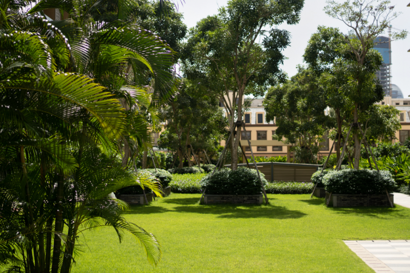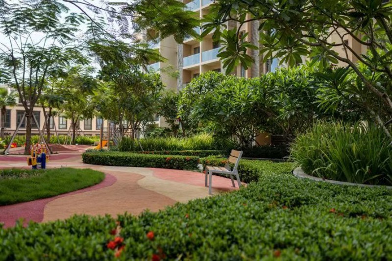 以ONE PARK金边壹号为典范,社区里拥有45%的超高绿化率,因地制宜种植不同的热带珍稀花木,将现代大楼和绿色繁茂植物巧妙融合在一起,令居家生活就像沉浸在花园中,每一天都是不断地鲜氧循环,没有PM2.5,远离了病毒喧嚣。